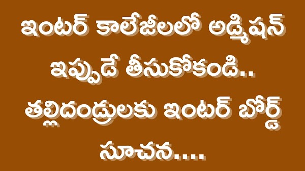 ఇంటర్ కాలేజీలలో అడ్మిషన్ ఇప్పుడే తీసుకోకండి.. తల్లిదండ్రులకు ఇంటర్ బోర్డ్ సూచన....